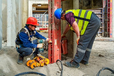 - Для прямых стен впервые была применена система RCS-G, которая максимально использовала существующие отверстия в плите перекрытия для подъема системы.